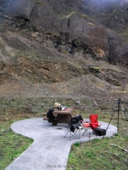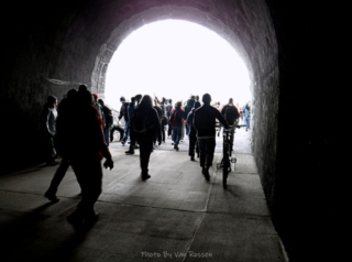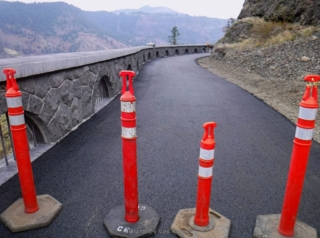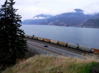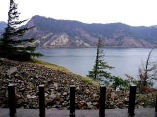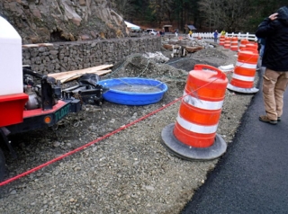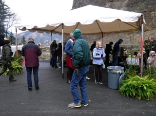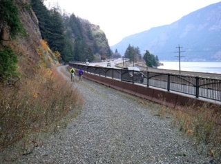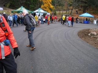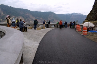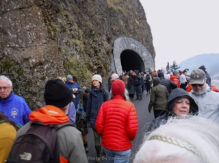 A different kind of hike. Today was the official dedication of the new Mitchell Point Tunnel, part of the Historic Columbia River Highway restoration. To make it more interesting I decided I would hike part of the finished and still in progress sections of the highway to the tunnel. I started at Starvation Creek State park to avoid the crowds at Viento State Park the official parking spot. I was surprise to run into Ted from the Rambles who had the same idea. Ted brought his bike and hoofed it over to Mitchell Point. The dedication had some nice trapping with dignitaries like congressman Peter DeFazio who helped get federal funding for the project. After the waiting and speeches we all gathered to enter the tunnel after the ribbon was cut. The most interesting part was feeling the change of mood as this mass moved into the tunnel from daylight and into total darkness a sense of panic. We all just stumbled along until we go light from the first window. After going through and back on the tunnel it was time to hike back to my car. Total walking distances out and back 10.5 miles.