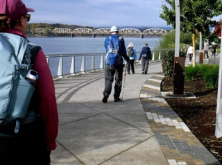 Lori put together another Tom Walk, this time over in Vancouver, WA. Lori, Marilyn, Barbara, Wendy, Tom and I met at the Pearson Air Museum at Fort Vancouver. From there we preceded on our normal route of going pass Fort Vancouver, over the Confluence Bridge, under the I5 bridge to walk along the Vancouver Waterfront Trail. At the end of the is a group of picnic tables and we stopped there for a bit to eat. After our stop we headed to to Esther Short Park and over the Evergreen St. Bridge back to Fort Vancouver. Our last bit was to walk along Officers Row and back to our cars. This was about a 4.5 mile walk.