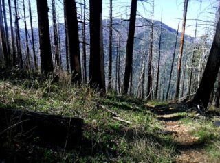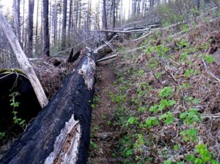 A conditioning hike to overlooking Indian Point in the Columbia River Gorge. The trail sequence was Herman Creek, Nick Eaton Way, Ridge Cutoff Trail and Gordon Creek Trail. This takes one through burn forest, old growth, scenic viewpoints and on Nick Eaton Way some very steep trails. The early season wildflowers were in bloom. By the numbers: 8,4 miles, 2790 ft elevation gain in 5 1/2 hours on trail.