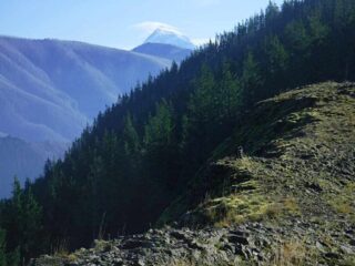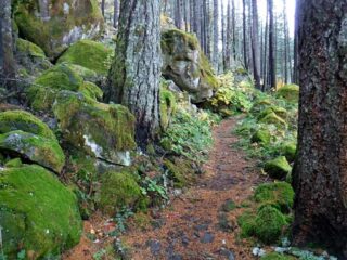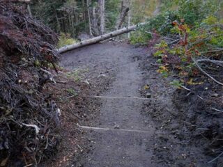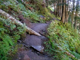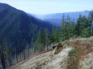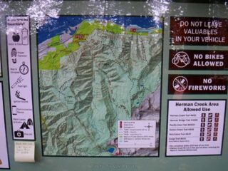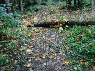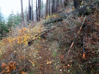 I need to get some elevation gain workout in and we had some nice weather so I did a hike up to Indian Point High Point. This route combined Herman Creek Trail with Nick Eaton Trail, the Connector Trail and Gordon Creek Trail to make a lollypop loop. I had some Fall color and about dozen trees down across the trail.