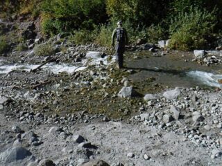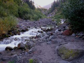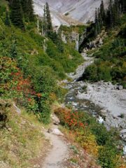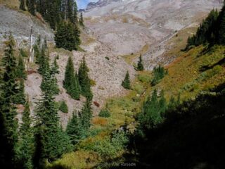 When I got to Paradise Loop trail I found the angle of the sun and fresh snow on Mt. Hood was a photographer’s dream. The rest of the way across Paradise Park and up the user trail made me wish I had brought my SLR to be able to get quality photographs of what I was seeing. I was disappointed that as I headed up the user trail that mountain start to form a cloud around it and block my view. After getting to the upper canyon rim I hit my turn around time and started heading back. I was happy to find on my return trip that Zigzag Creek broke the rules and water level was lower rather then higher. It made the creek crossing easy. As I finished my hike I lucked out the cloud on Hood went away and I was able to get some more good photos of the mountain.