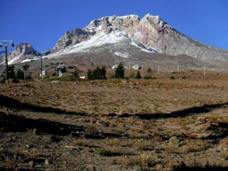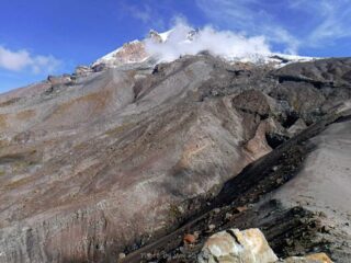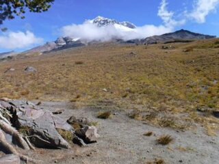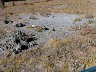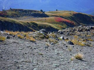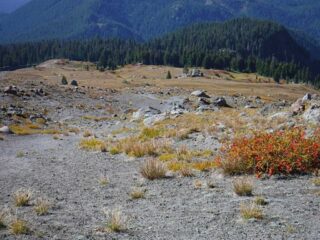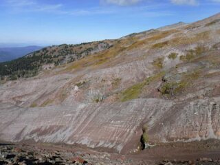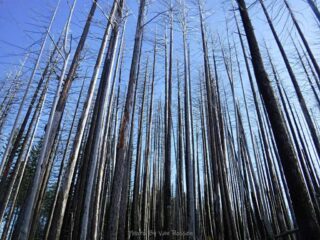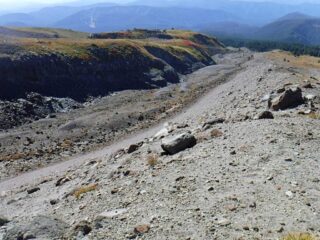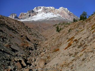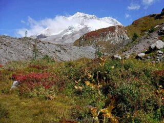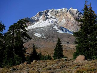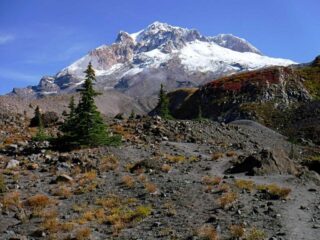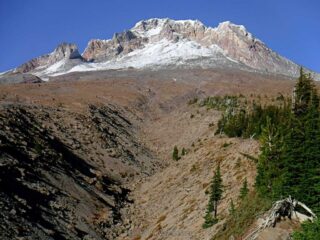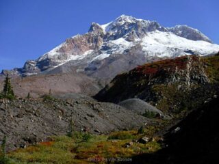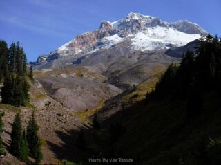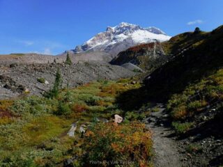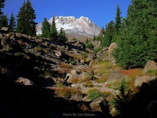 It is Fall hiking season and when you get a sunny day and some free time you have to go for a hike. My plan was to hike from Timberline Lodge on the PCT to Paradise Park trail then up to the Paradise Loop Trail over to Split Rock. From there I would hike a user trail up to a high canyon. When I got to Timberline Lodge I was surprise to find a light covering of snow on the top of Mt. Hood. I was starting out at sunrise and there were strong winds and near freezing temperature. I went to Climbers Hut to get out of the wind get my gear ready. I started out on a wind swept frozen trail, by the time I got to Zigzag Canyon the winds had died down on that side of the Hood. When I got to Zigzag creek I had to do a wet boot crossing. From there the up hill starts.