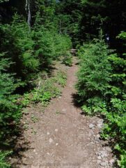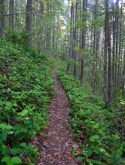 Notes: Breaking through overgrown trails slows you down a lot. It is also less safe as you do not know where you are stepping and you hit rocks or sticks that will trip you. This is the first time when hiking that I did a full face plant as a stick on the trail tripped me and thick brush kept me from getting poles forward to catch me.