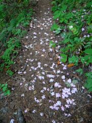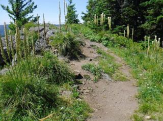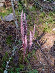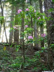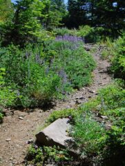 Before the Forest Service decommissioned that road and made this longer and greater elevation hike, it was a very popular and one I had never done. So for me this was a new trail to explore. For the first mile the trail follows the old road bed be has been well wilded. Then you go off on the old trail and follow that to the summit. It is mostly a gradual every climbing trail with a few steep switch back thrown in. It is a walk in the woods but going up hill. I was about two weeks late for best part of the flower show but there were a few still lingering around. The summit where a fire lookout once stood would have had a great 360 view except the trees have grown up block part of it. The trail was mostly in good shape which was nice.
