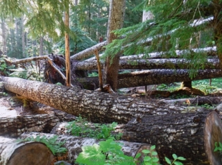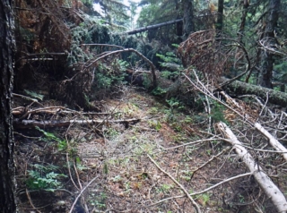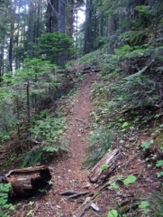 The numbers – 6.8 miles, 2180 total elevation gain, 5 1/2 hours on the trail with a lot of that trying to find the trail, cutting limbs, climbing over log piles and a shot lunch break.