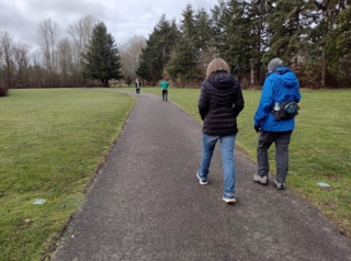 This was a social Sunday. Lori and I first went to visit one of our former elderly ramble leaders who was in the hospital and then on to do a social stroll with Jeanette who was just back from her three week trip to South America. It was a cold day but the rain and snow stay away. We finished up with brunch at the Murrayhill Taphouse.
